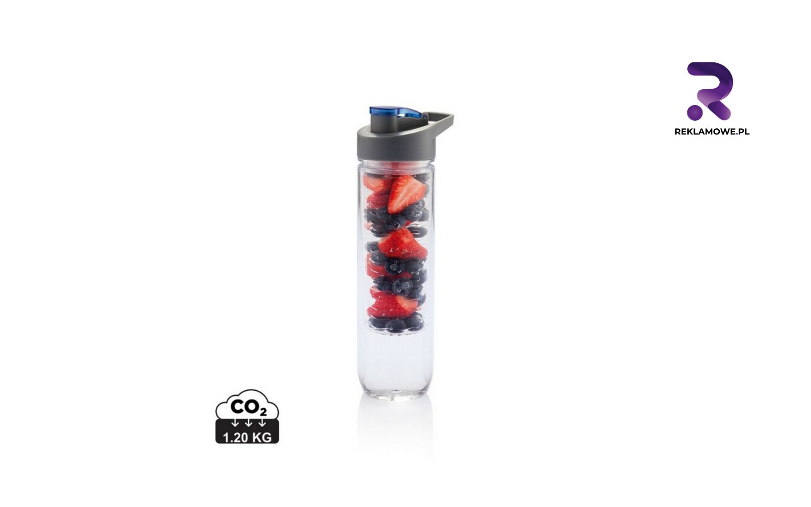 - Bidony z infuserem – wewnętrzny koszyczek na owoce lub zioła zmienia zwykłą wodę w aromatyczny napój, dzięki czemu marka kojarzy się z troską o zdrowie i nowoczesny styl życia. Idealne na biurko, do samochodu i na plenerowe eventy.